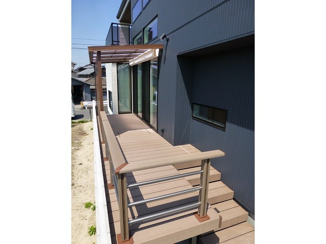 9枚目:ウッドデッキには手すりをつけて安全対策をしています