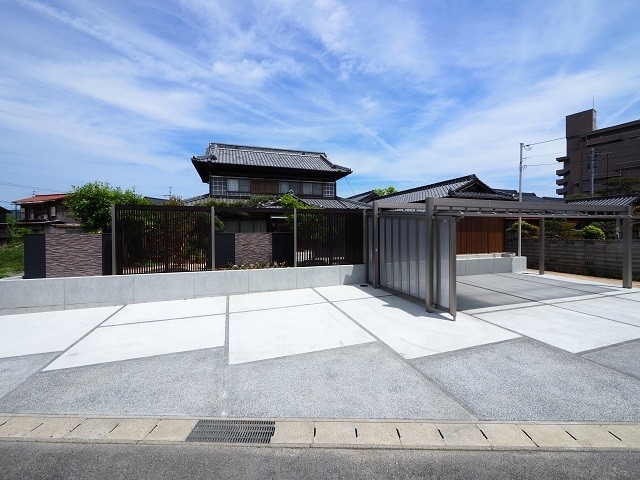 2枚目:お庭の目隠しは重たくなりすぎないように格子と壁の組み合わせで仕上げました