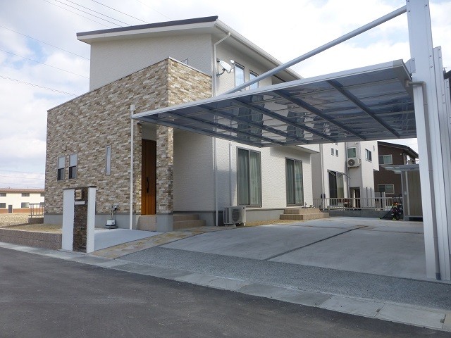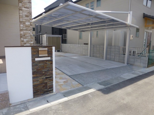 5枚目:カーポートは片側支持の三協のダブルフェースを採用しました