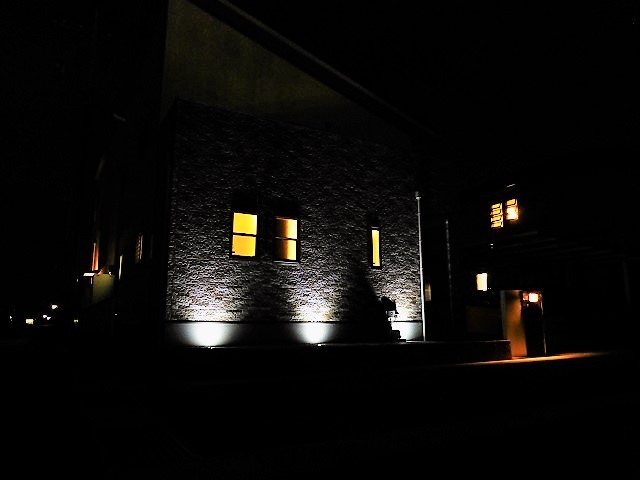 6枚目:お家の脇にスポットライトをつけて夜も印象的に