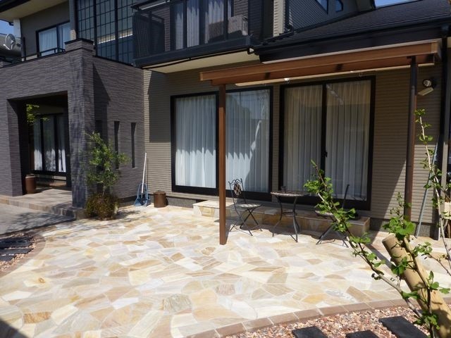 6枚目:平板TOYOオークルストーン乱形を全面に貼りました