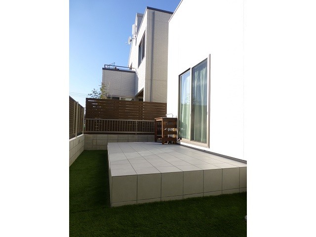 5枚目:裏庭にはタイルデッキを設置し外で寛げる空間を