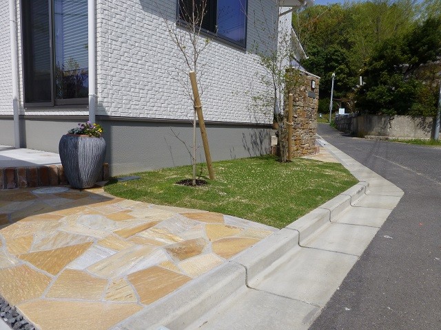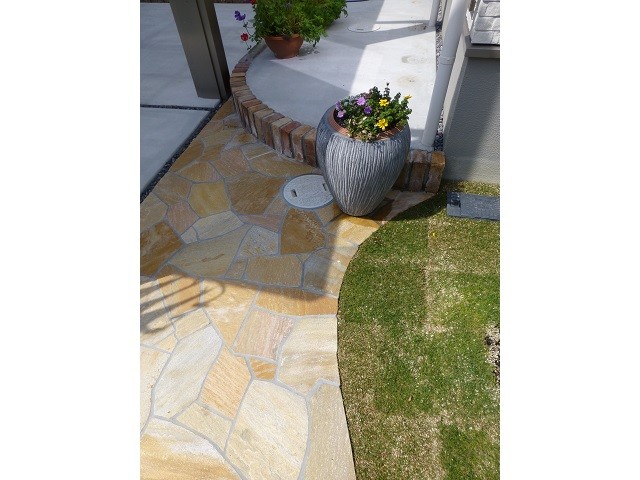 2枚目:スペースを最大限に生かして芝生と乱形貼りの組み合わせを