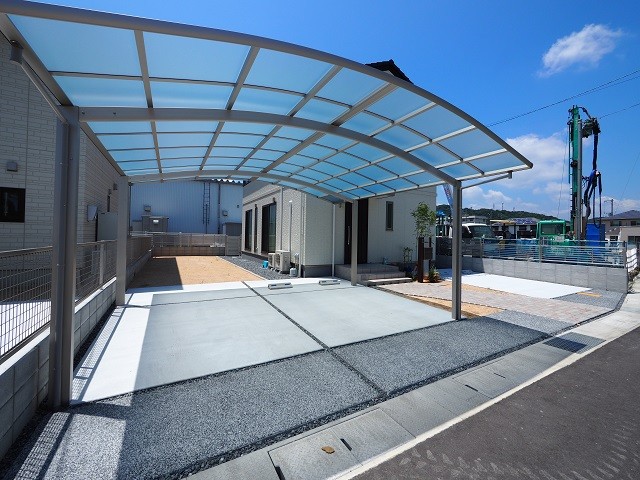 2枚目:カーポート下は土間と洗い出しの組み合わせ