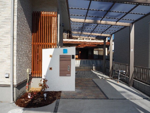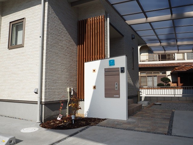2枚目:門柱には最近需要の高い宅配ポストを選択