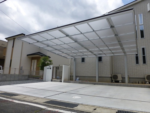 2枚目:カーポートは後ろ支持のダブルフェース、支柱が邪魔になりません