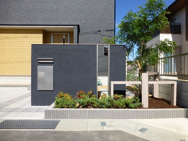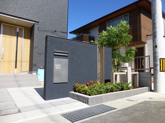 5枚目:LIXILのアレンジフレームで立体感のある門周りを