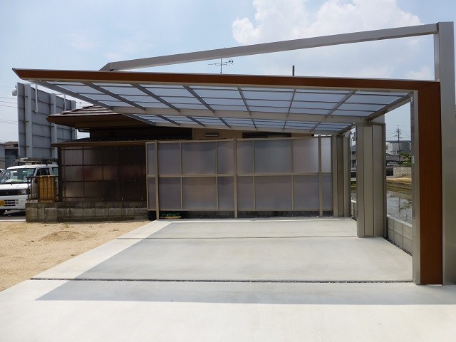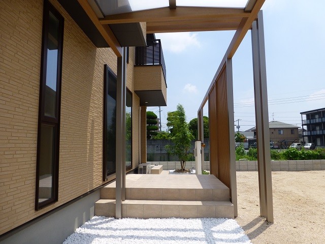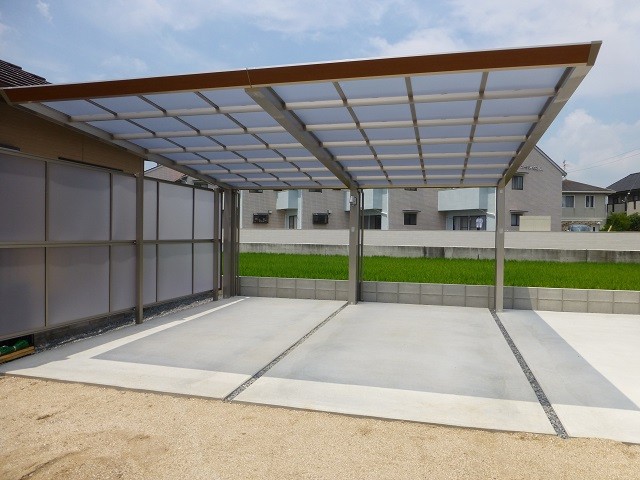6枚目:カーポートは四国化成のマイポートNextを、側面パネルでプライバシーの確保をしました