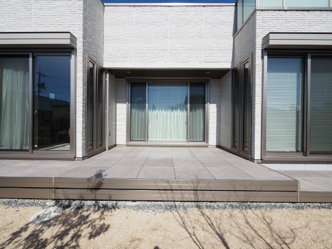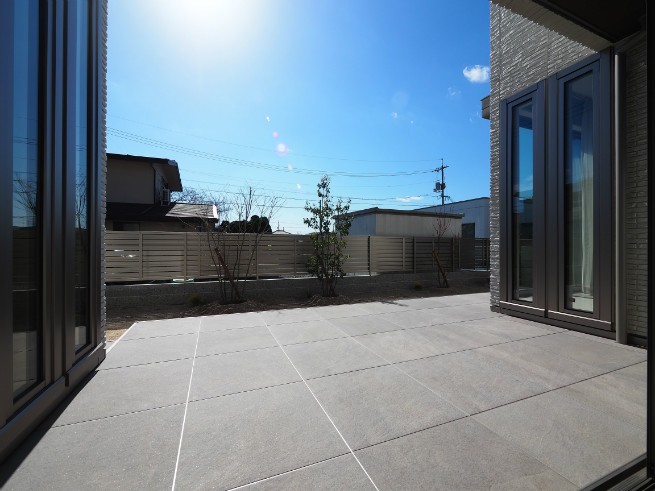 5枚目:広々としたタイルデッキは建物の雰囲気とぴったりです