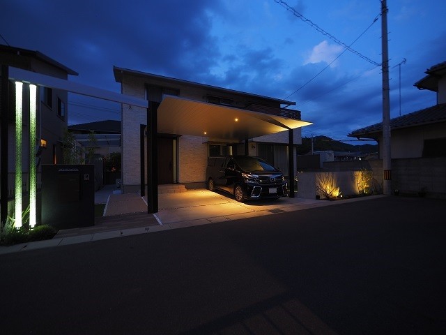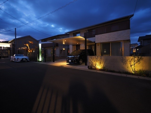 3枚目:擁壁風の塗り壁が照明を一層引き立ててくれます
