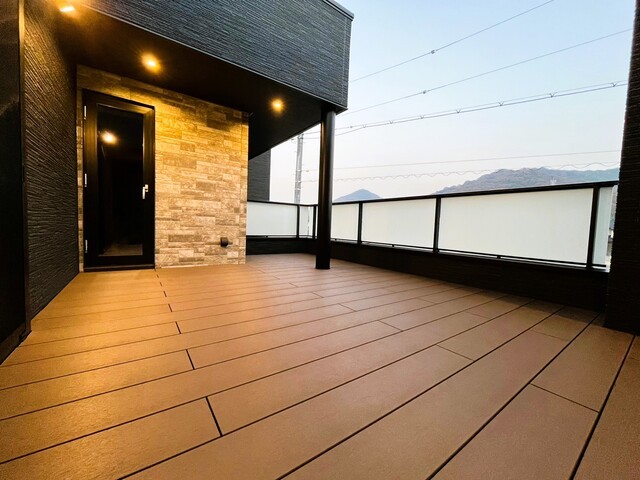 - <div>1枚目:高級感ある木調風天井のカーポート</div><div>2枚目:建物と統一感ある外周り</div><div>3枚目:ヤシの木を設置して南国風な雰囲気へ</div><div>4枚目:石目長ボーダータイルの門柱。自然石が印象深い</div><div>5枚目:プライバシーがしっかりと確保された、広々としたテラス</div>