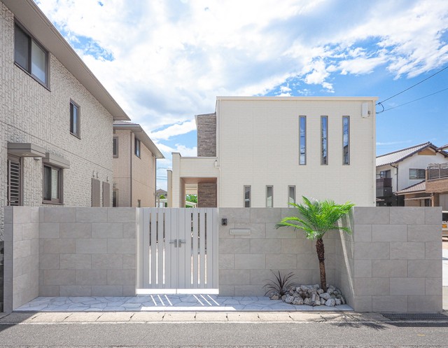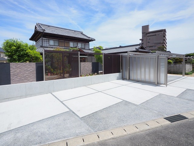 - <div>1枚目:魅せることにこだわりました</div><div>2枚目:車が出入りする全面を総タイル貼りにしています</div><div>3枚目:白色を基調として統一感を出しています</div><div>4枚目:ハンガーゲートを採用してクローズ外構にしました</div><div>5枚目:夜も迎え入れるような温もりのある雰囲気です</div><div>6枚目:カーポートのサイドにもパネルをつけて目隠しと雨除けを兼ねています</div><div>7枚目:施主様との打ち合わせを重ねてご満足いただく外構となりました</div>