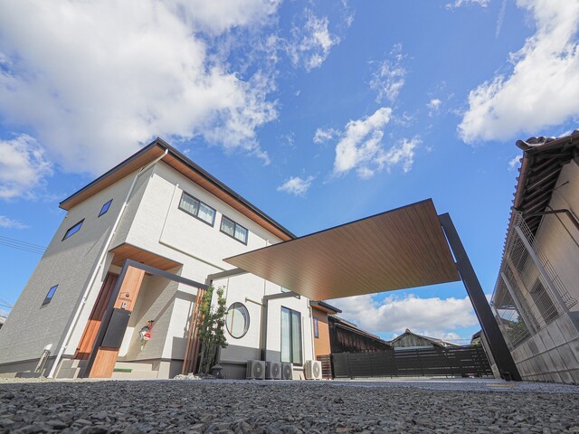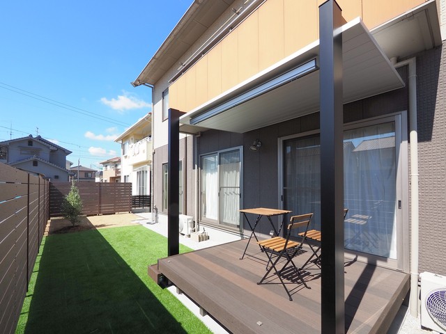 - <div>1枚目:シェード付きのテラスSCとウッドデッキ</div><div>2枚目:ビームスコラボデザインの物置</div><div>3枚目:人気のカーポートSCを設置</div>