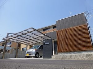 カーポートは片側支持のダブルフェースで視界を遮りません