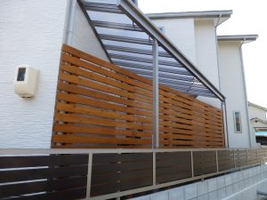 デッキ上にテラスを付けて横張のフェンスでプライバシーの保護を