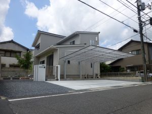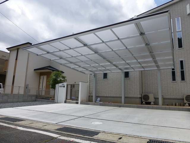 カーポートは後ろ支持のダブルフェース、支柱が邪魔になりません