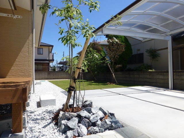 駐車スペースの奥は芝生を敷いて、ご自宅からの眺めもよさそうですね