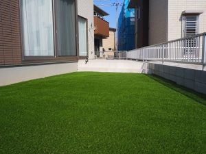 人工芝を敷いて完成、鮮やかです