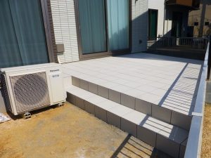 施工段階、タイルデッキを裏庭につけました